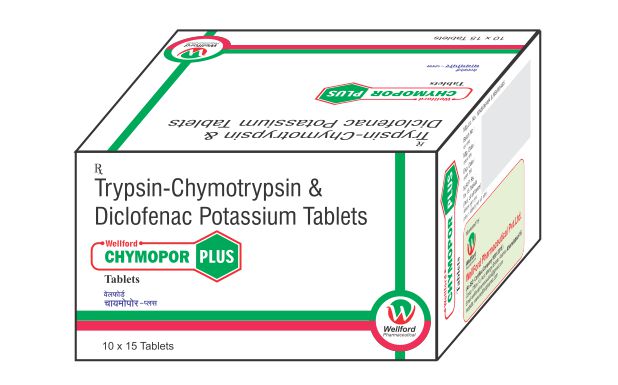 Diclofenac is a non-steroidal anti-inflammatory drug (NSAID) which works by blocking the release of certain chemical messengers in the brain that are responsible for pain, fever and inflammation (redness and swelling). Trypsin Chymotrypsin is a combination of enzymes which break down proteins into smaller fragments, thereby making them available for absorption into the blood. Once absorbed, they increase blood supply in the affected area and reduce swelling.